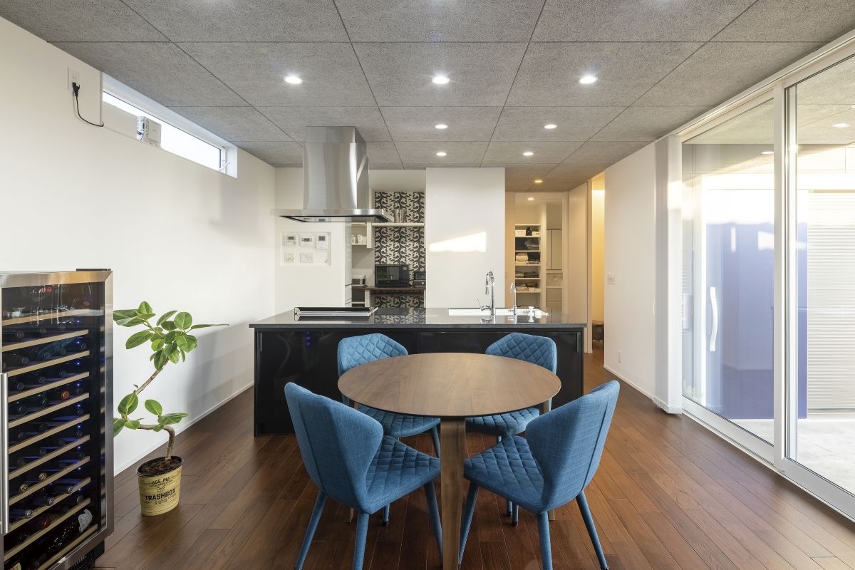 素材が光るコの字型の平屋